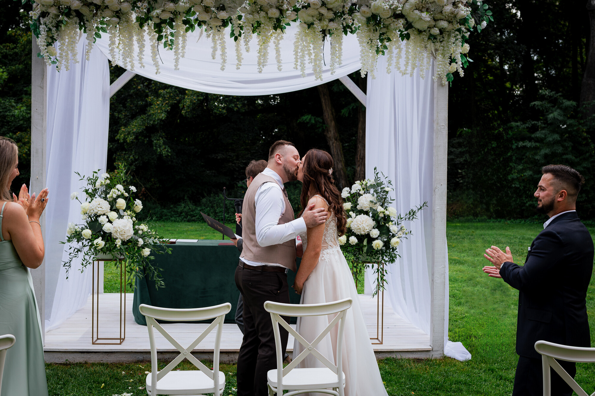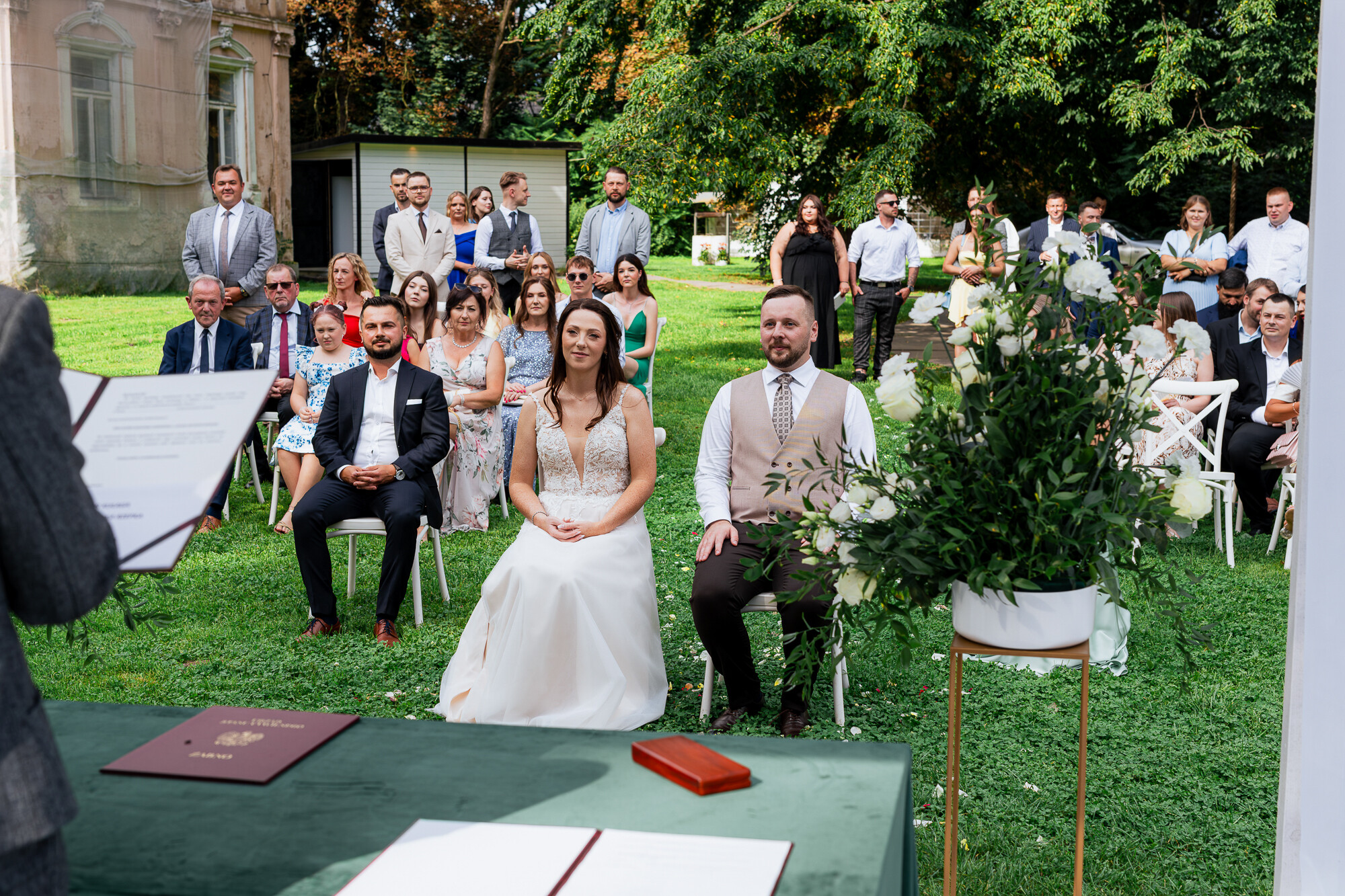 Położone w spokojnej, zielonej okolicy Imperial Wedding w Otfinowie stało się idealnym tłem dla wyjątkowego dnia Justyny i Michała. To właśnie tutaj odbył się ich ślub cywilny w plenerze – w otoczeniu natury, z dala od zgiełku, w swobodnej i romantycznej atmosferze.