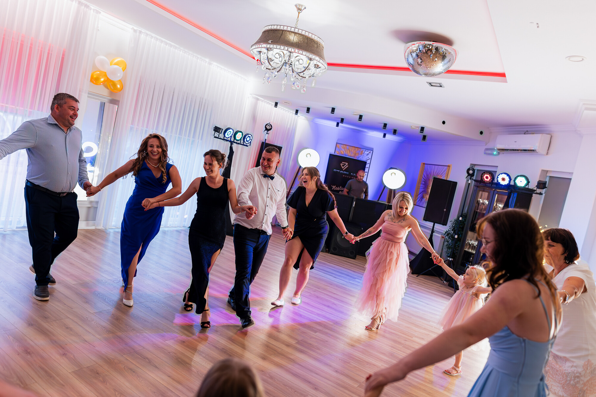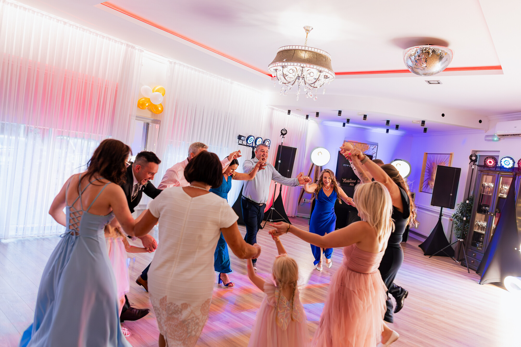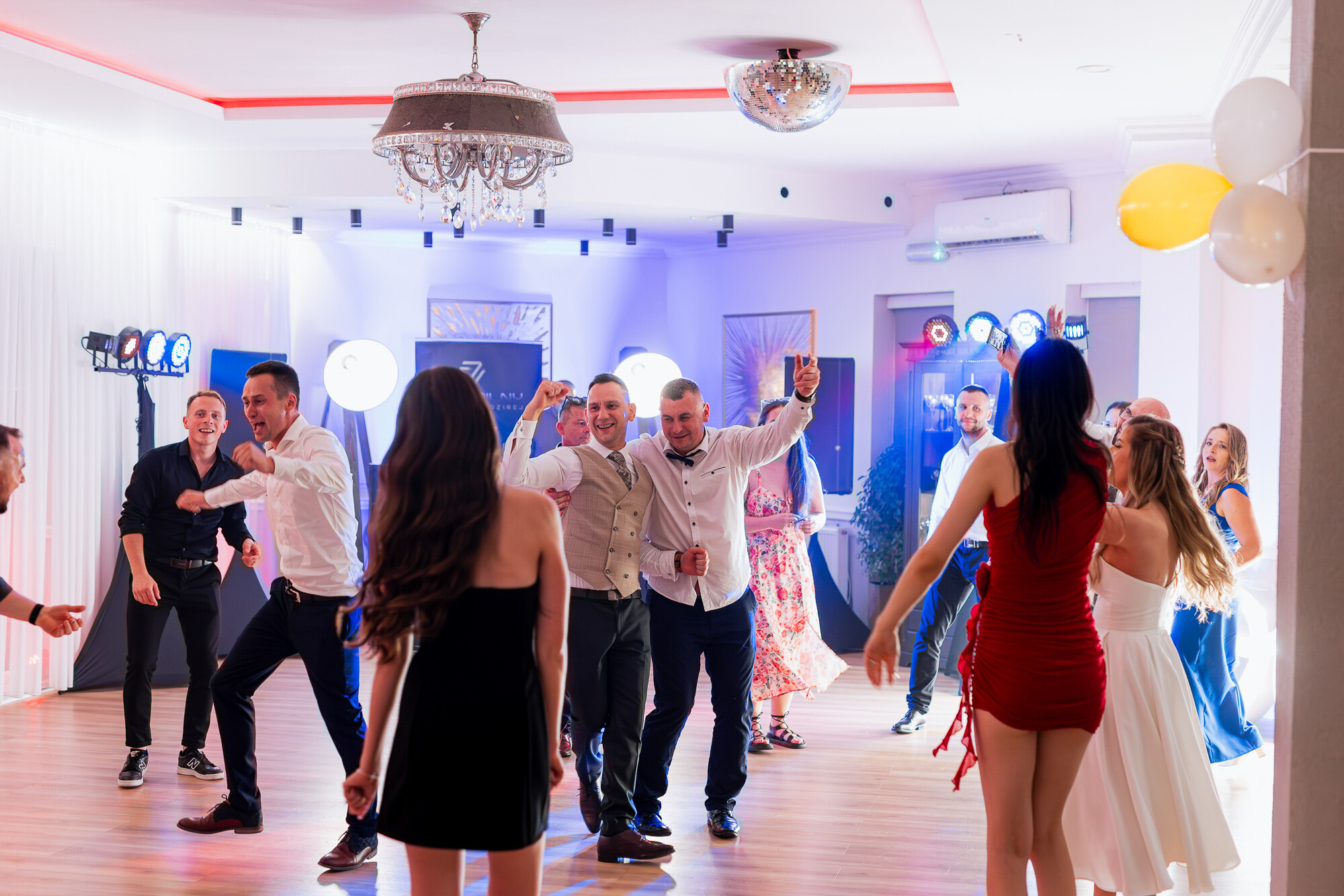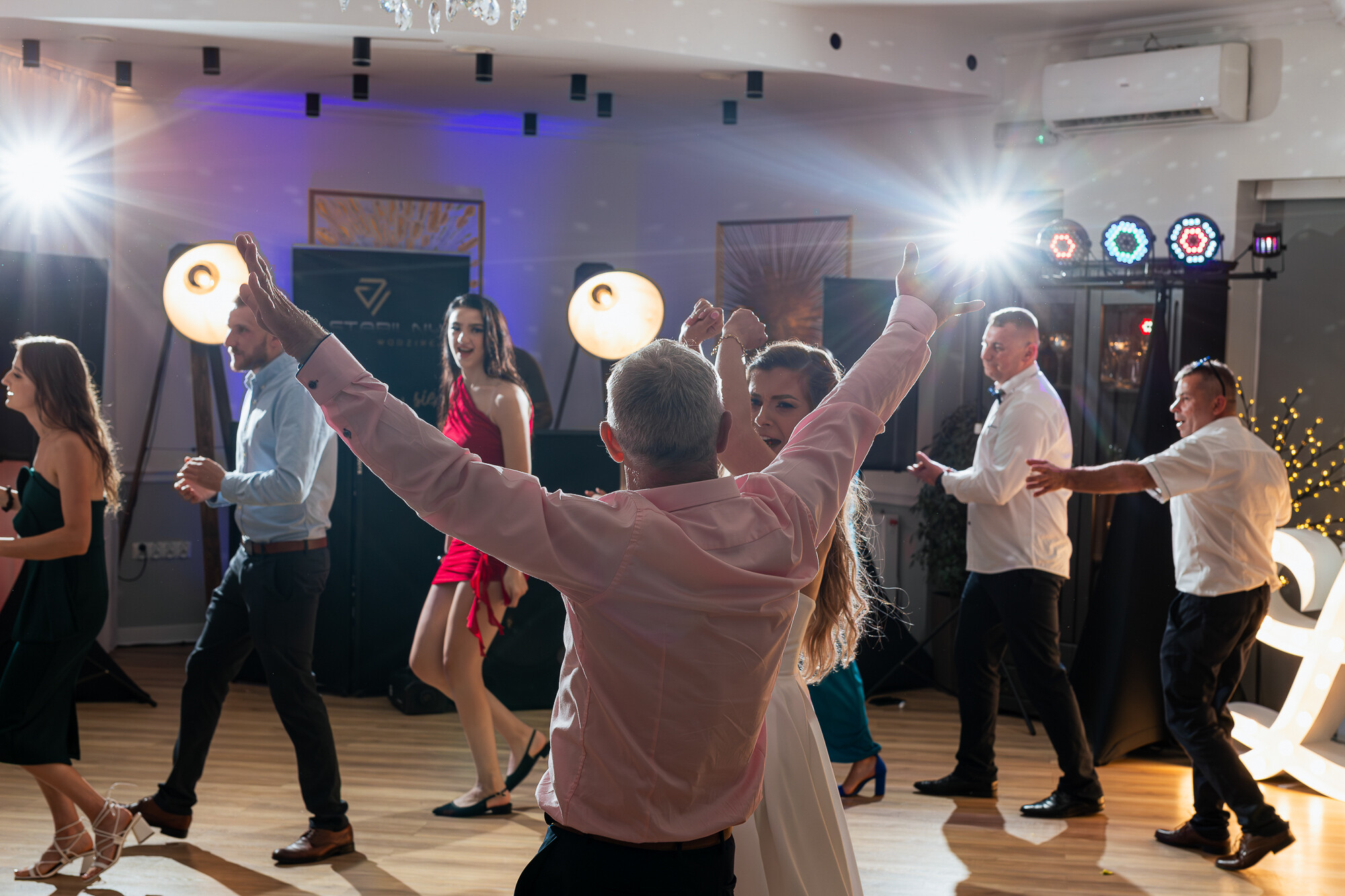 Natalia i Andrzej to mega pozytywni ludzie, a ich wesele? Prawdziwa petarda. Choć grono gości było niewielkie, to energia, jaką stworzyli, spokojnie mogłaby konkurować z największymi imprezami. Parkiet praktycznie nie pustoszał, a atmosfera była tak dobra, że ten dzień zostanie z nami na długo.