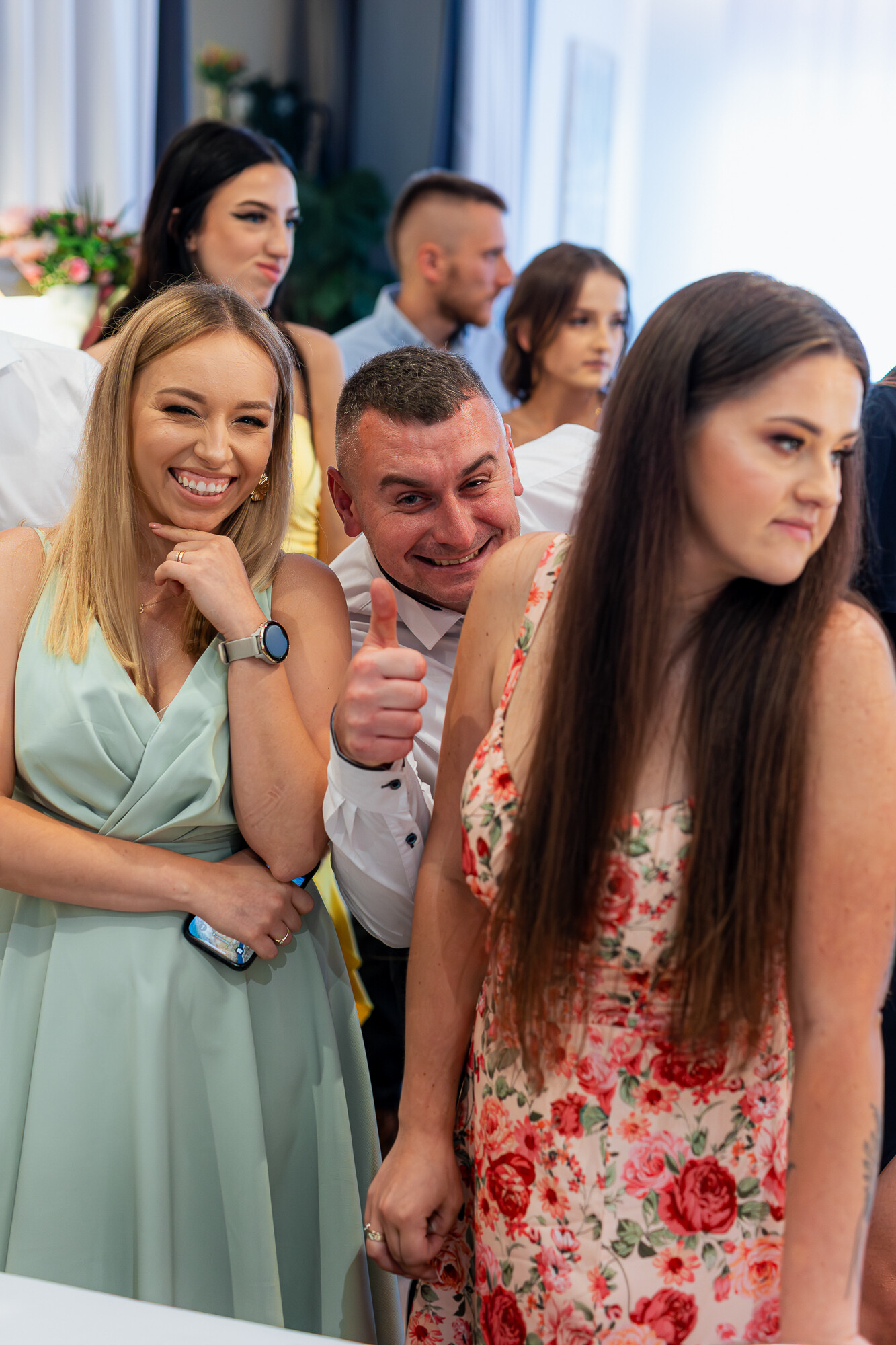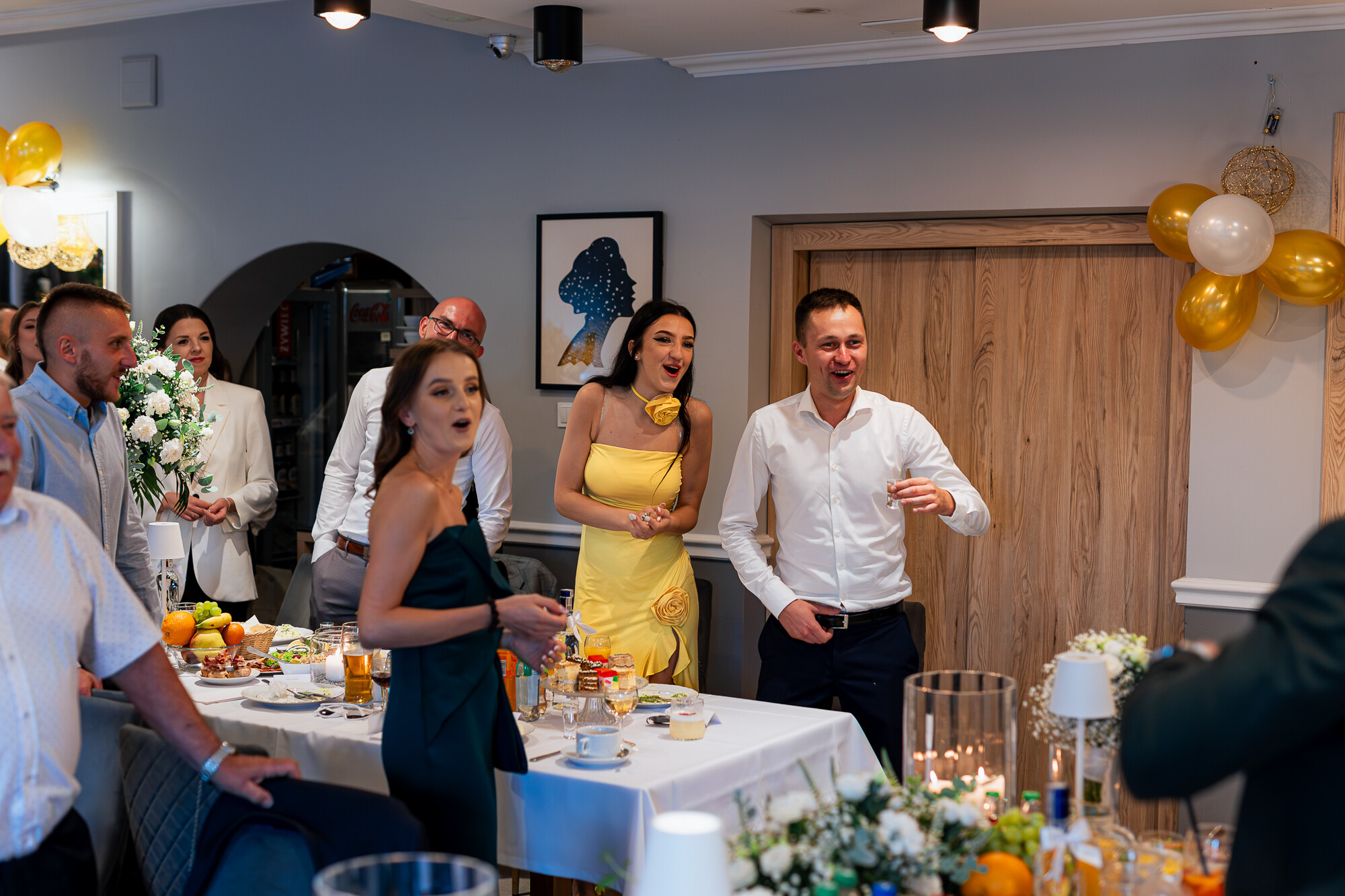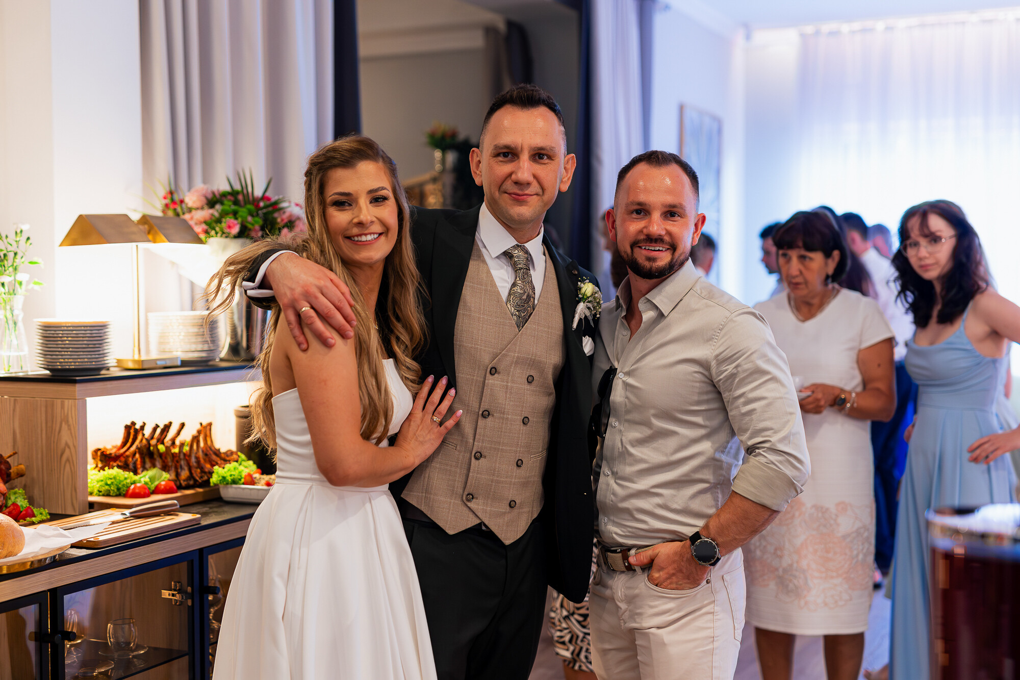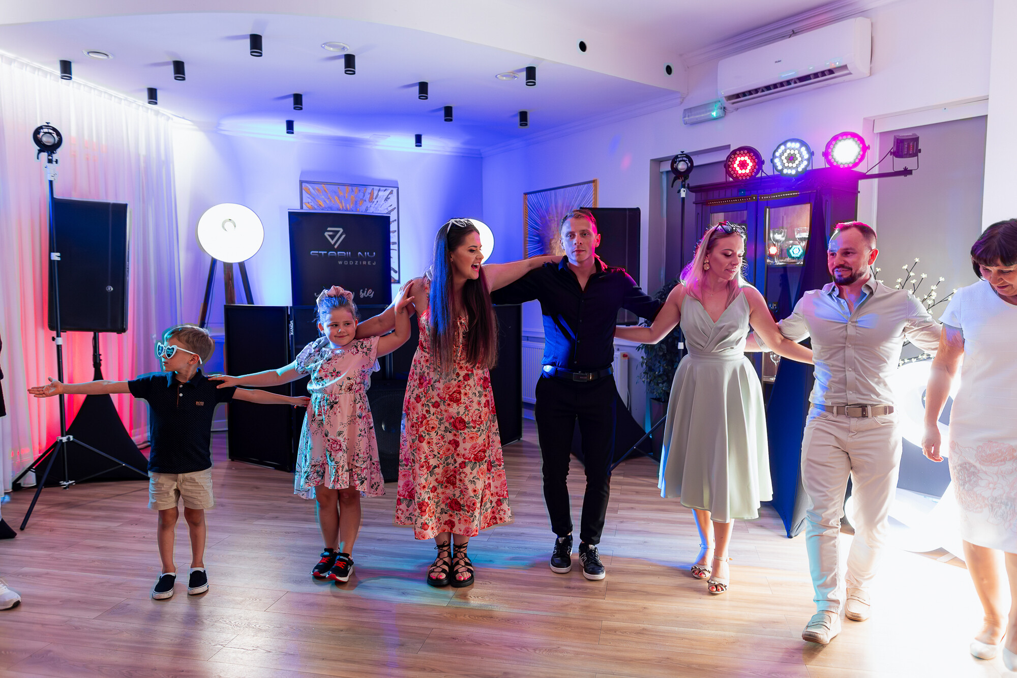 Natalia i Andrzej to mega pozytywni ludzie, a ich wesele? Prawdziwa petarda. Choć grono gości było niewielkie, to energia, jaką stworzyli, spokojnie mogłaby konkurować z największymi imprezami. Parkiet praktycznie nie pustoszał, a atmosfera była tak dobra, że ten dzień zostanie z nami na długo.