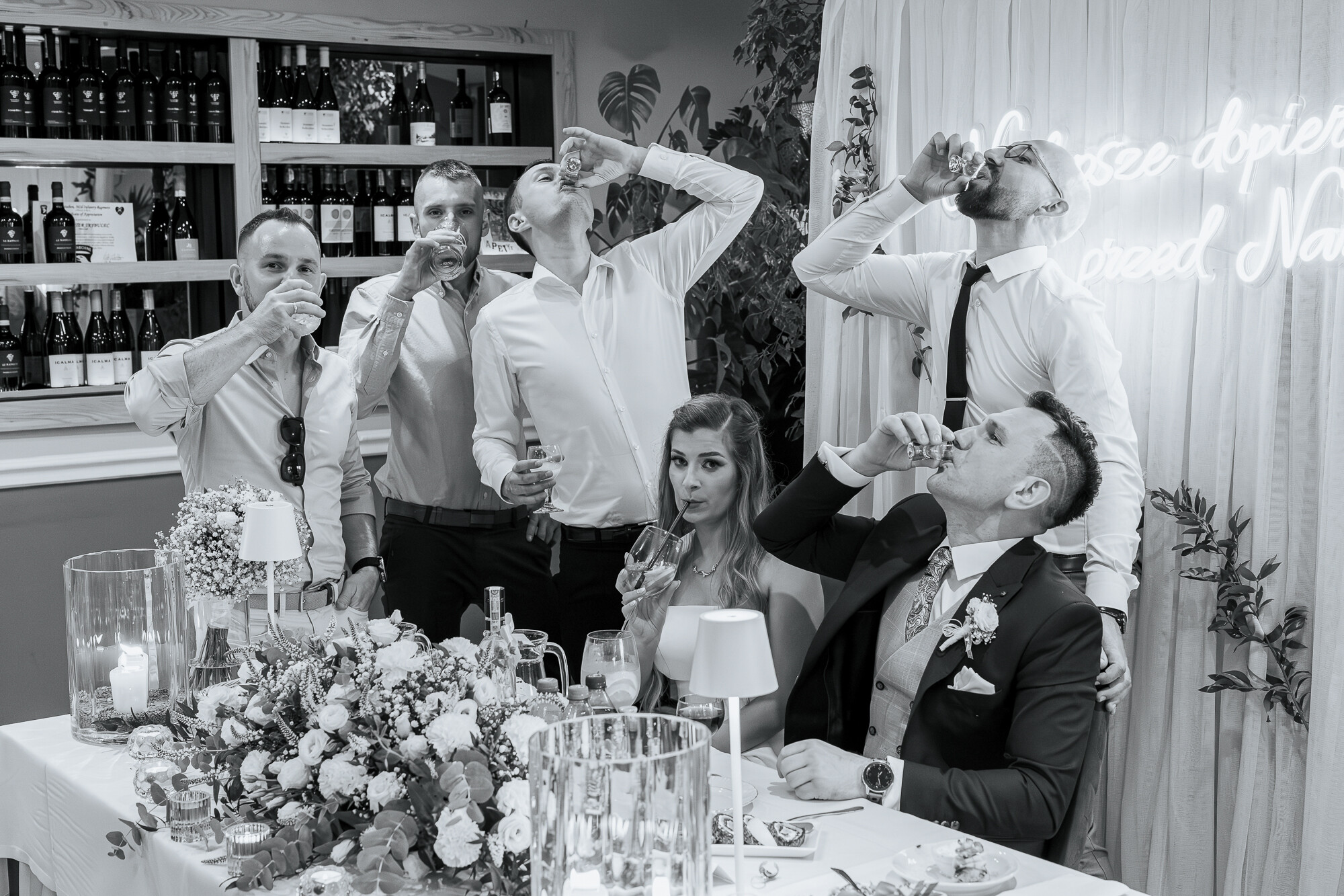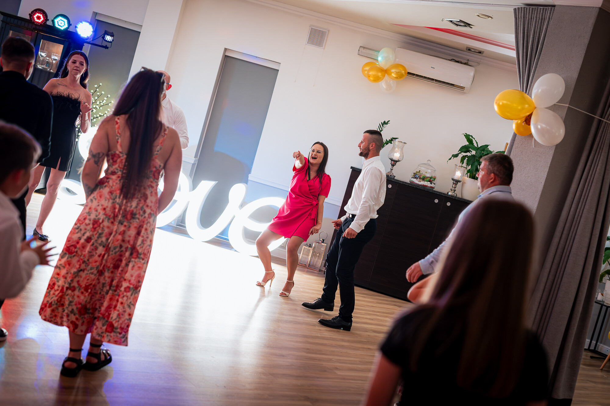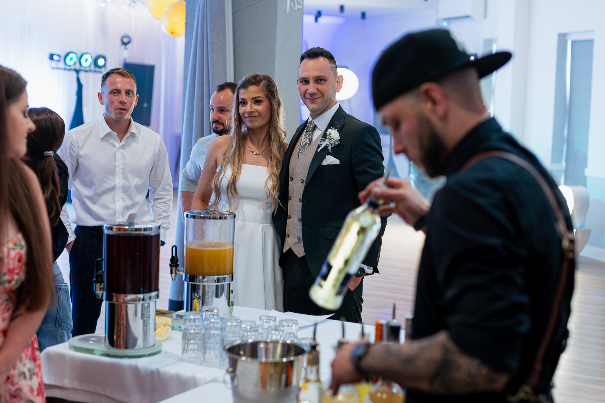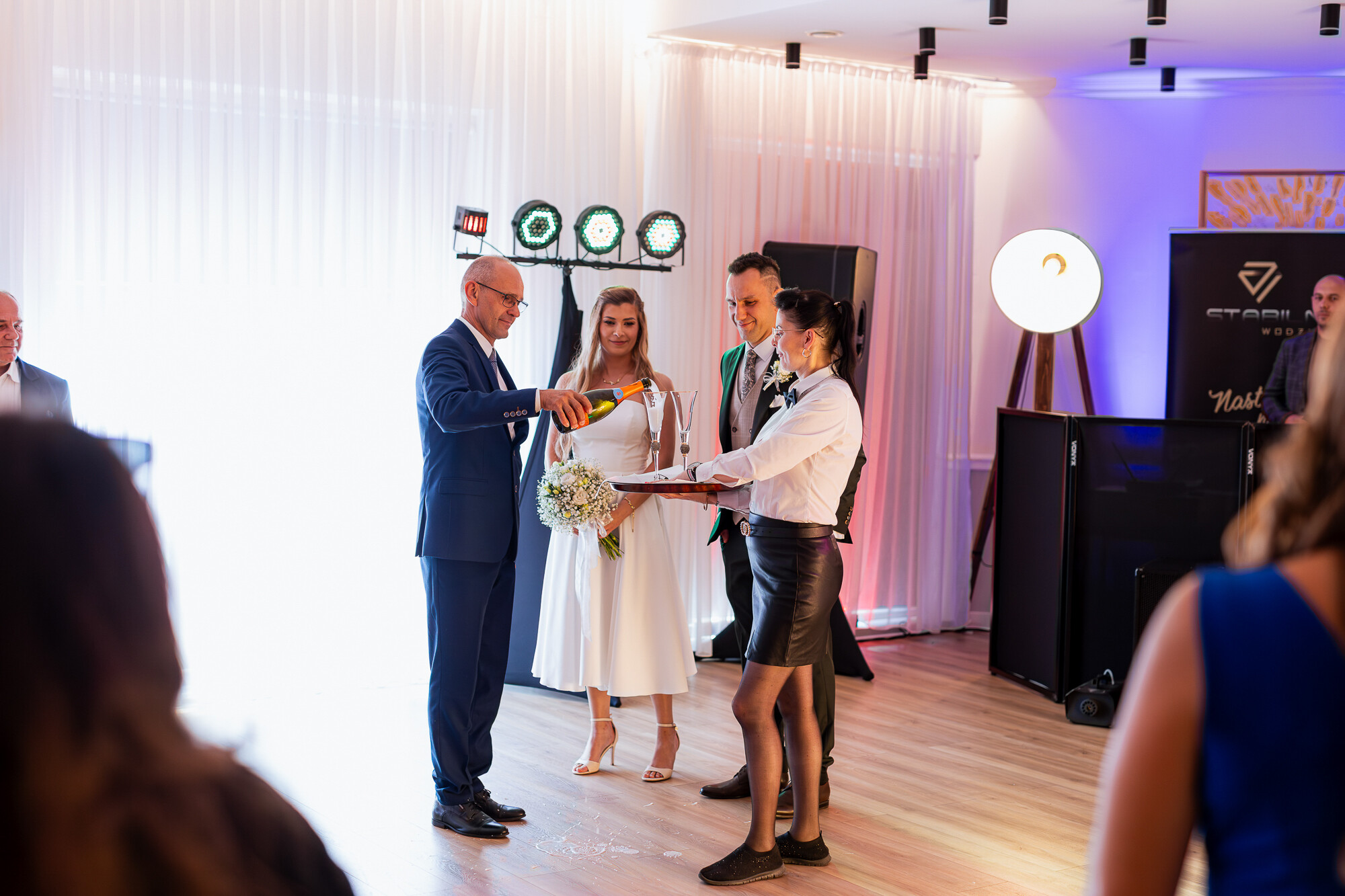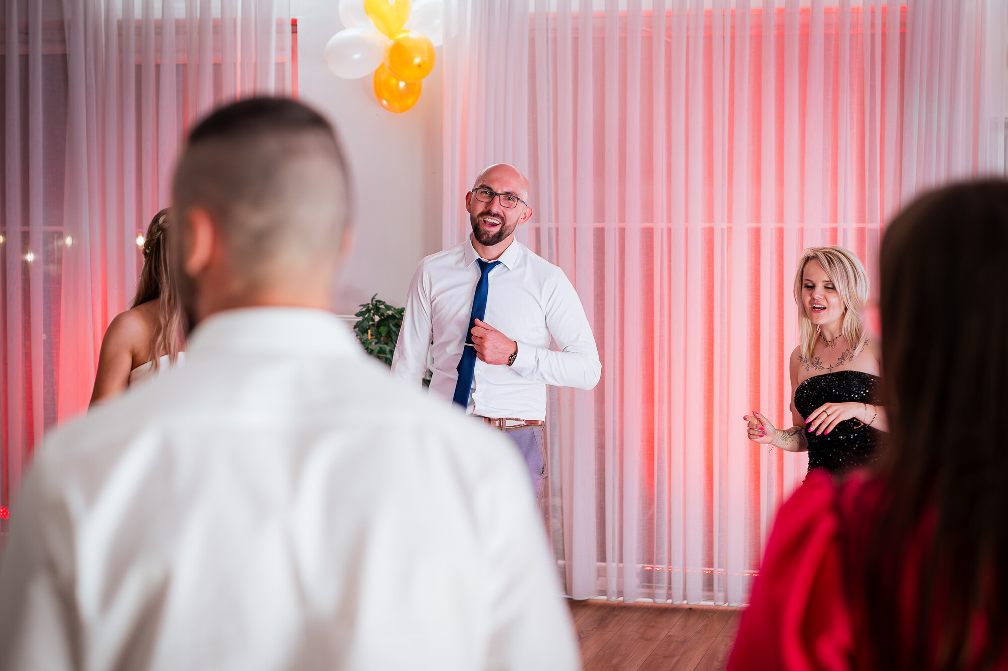 Natalia i Andrzej to mega pozytywni ludzie, a ich wesele? Prawdziwa petarda. Choć grono gości było niewielkie, to energia, jaką stworzyli, spokojnie mogłaby konkurować z największymi imprezami. Parkiet praktycznie nie pustoszał, a atmosfera była tak dobra, że ten dzień zostanie z nami na długo.