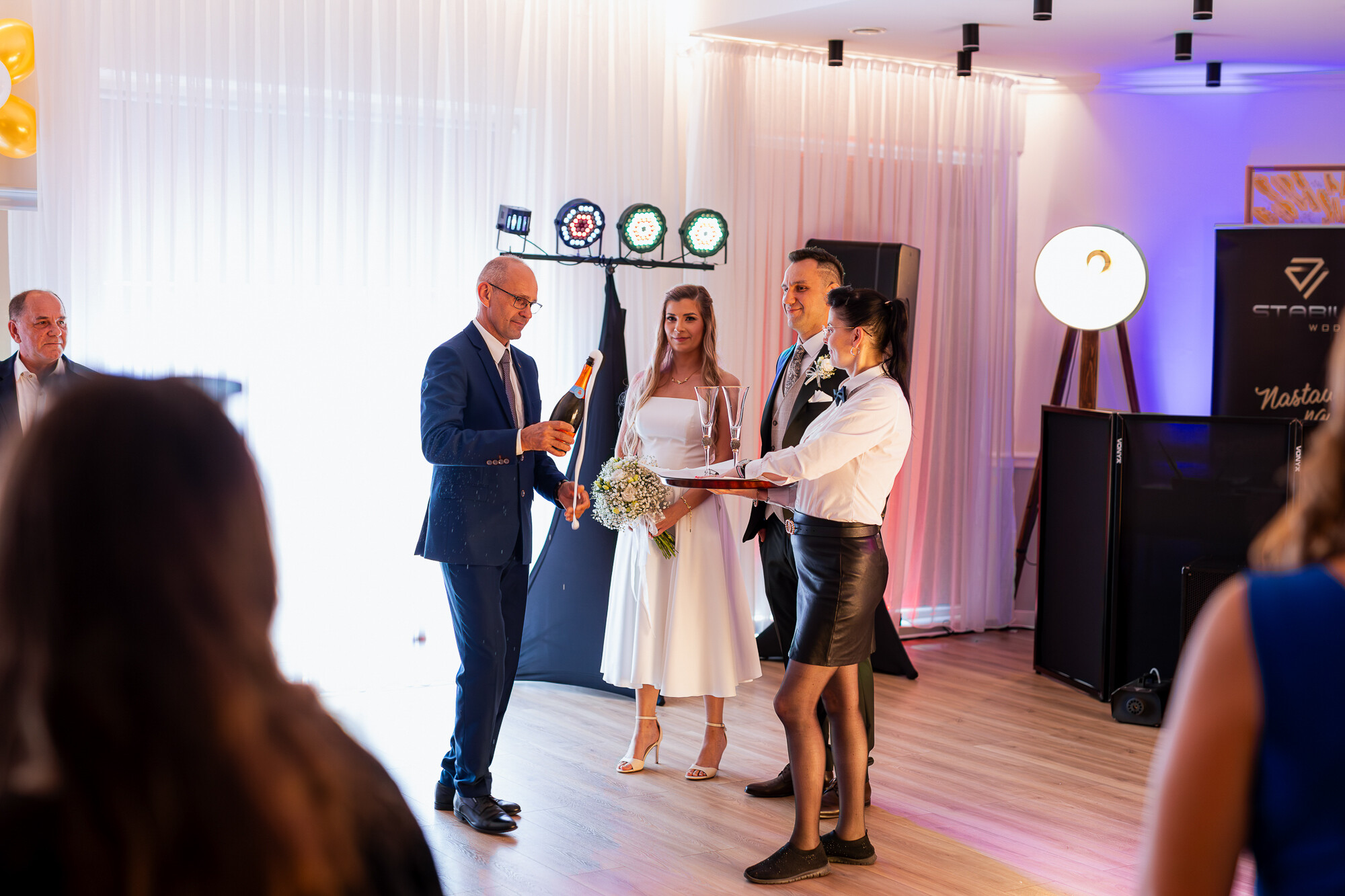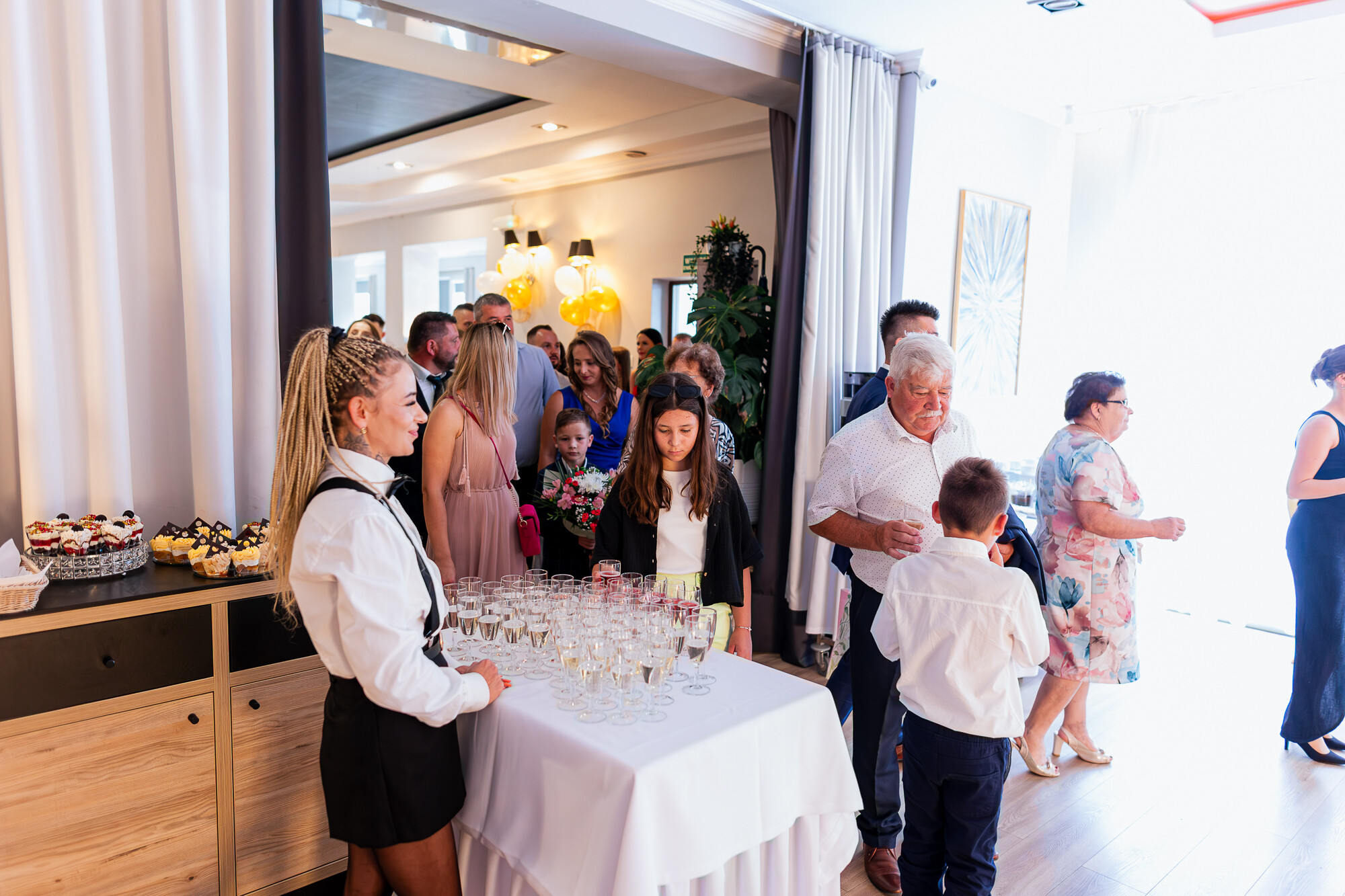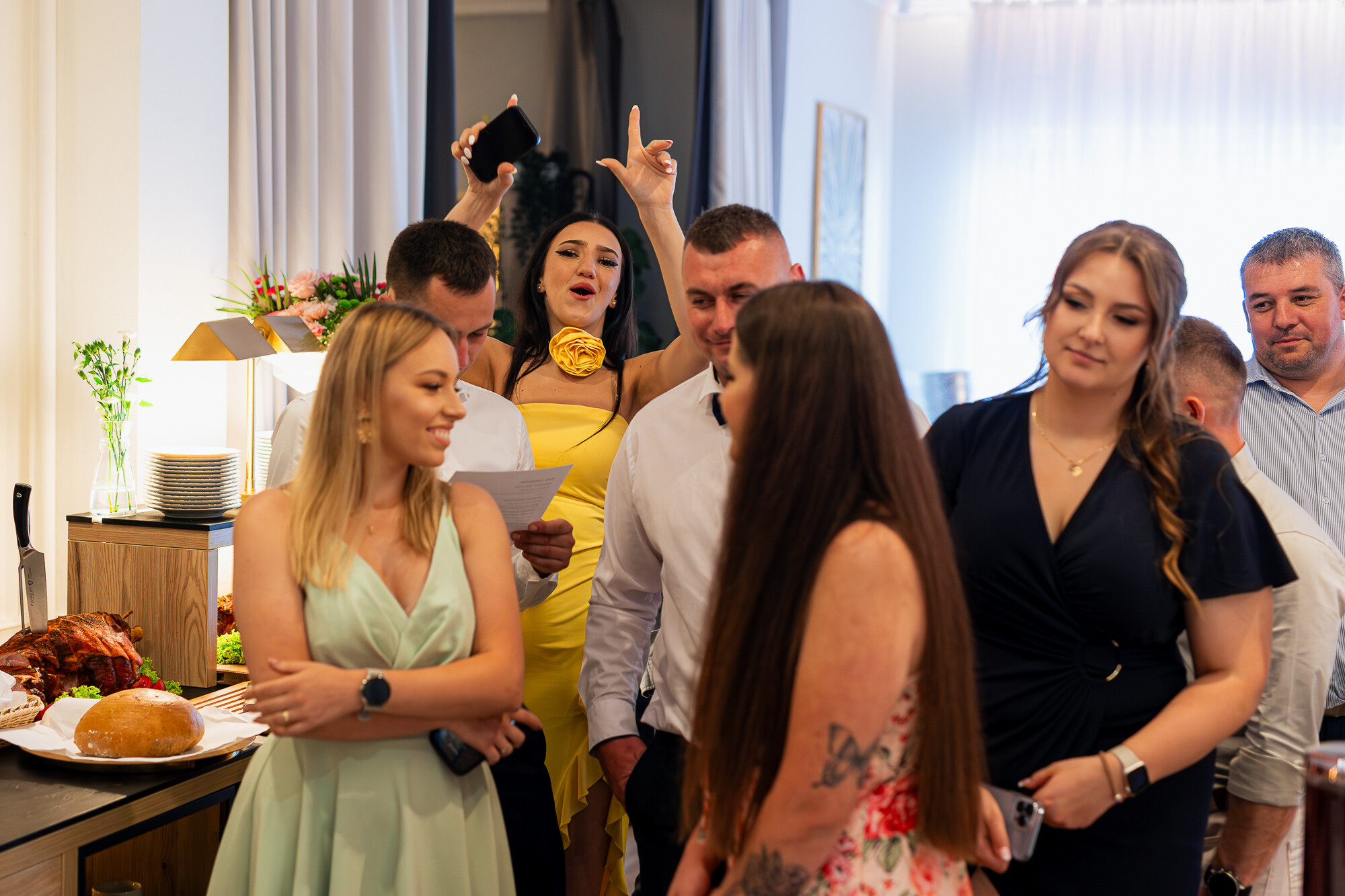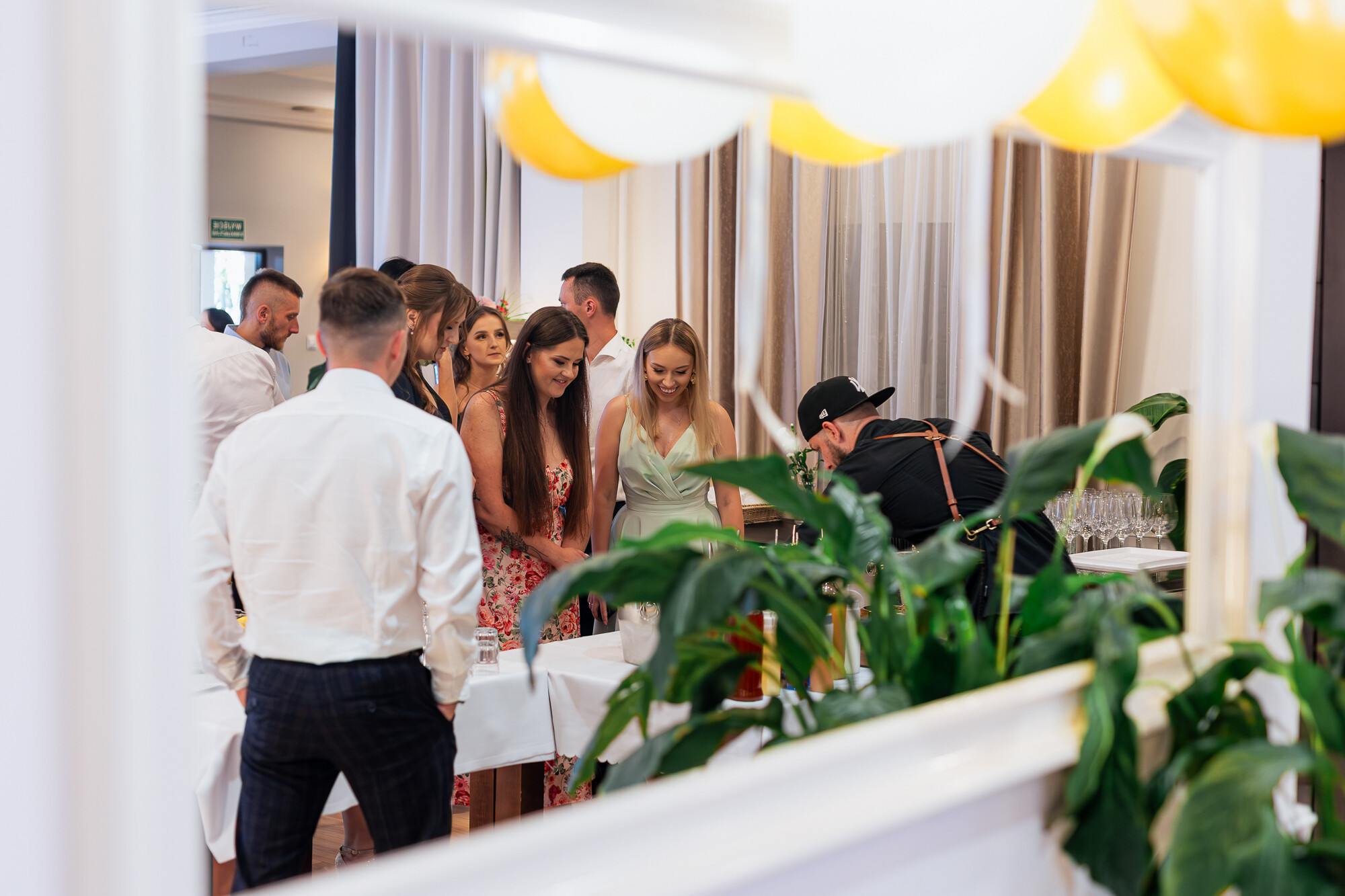 Natalia i Andrzej to mega pozytywni ludzie, a ich wesele? Prawdziwa petarda. Choć grono gości było niewielkie, to energia, jaką stworzyli, spokojnie mogłaby konkurować z największymi imprezami. Parkiet praktycznie nie pustoszał, a atmosfera była tak dobra, że ten dzień zostanie z nami na długo.