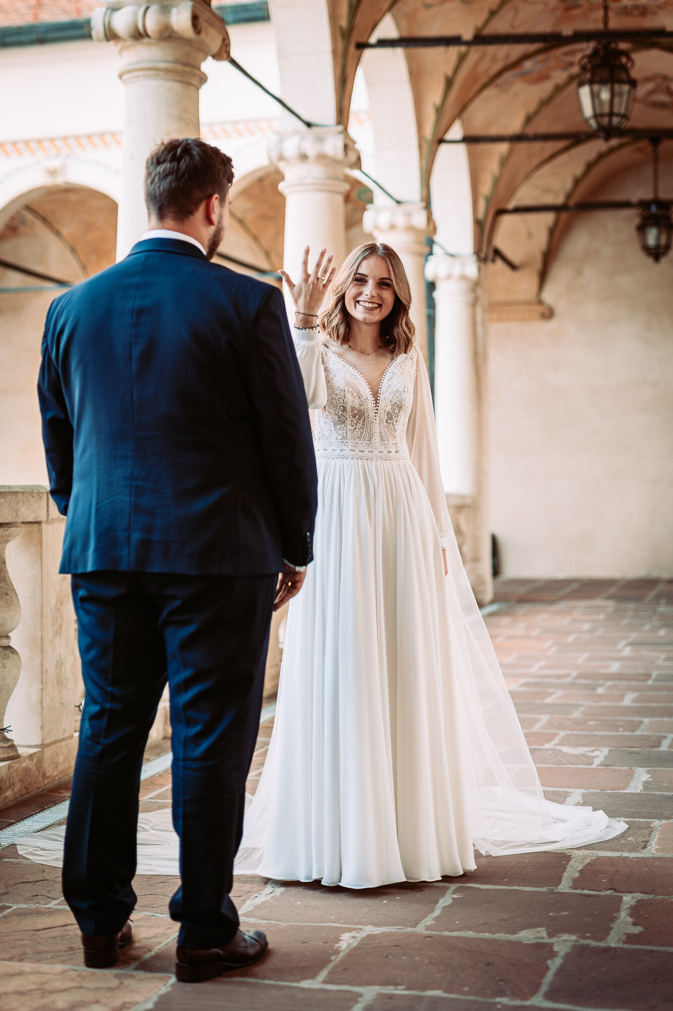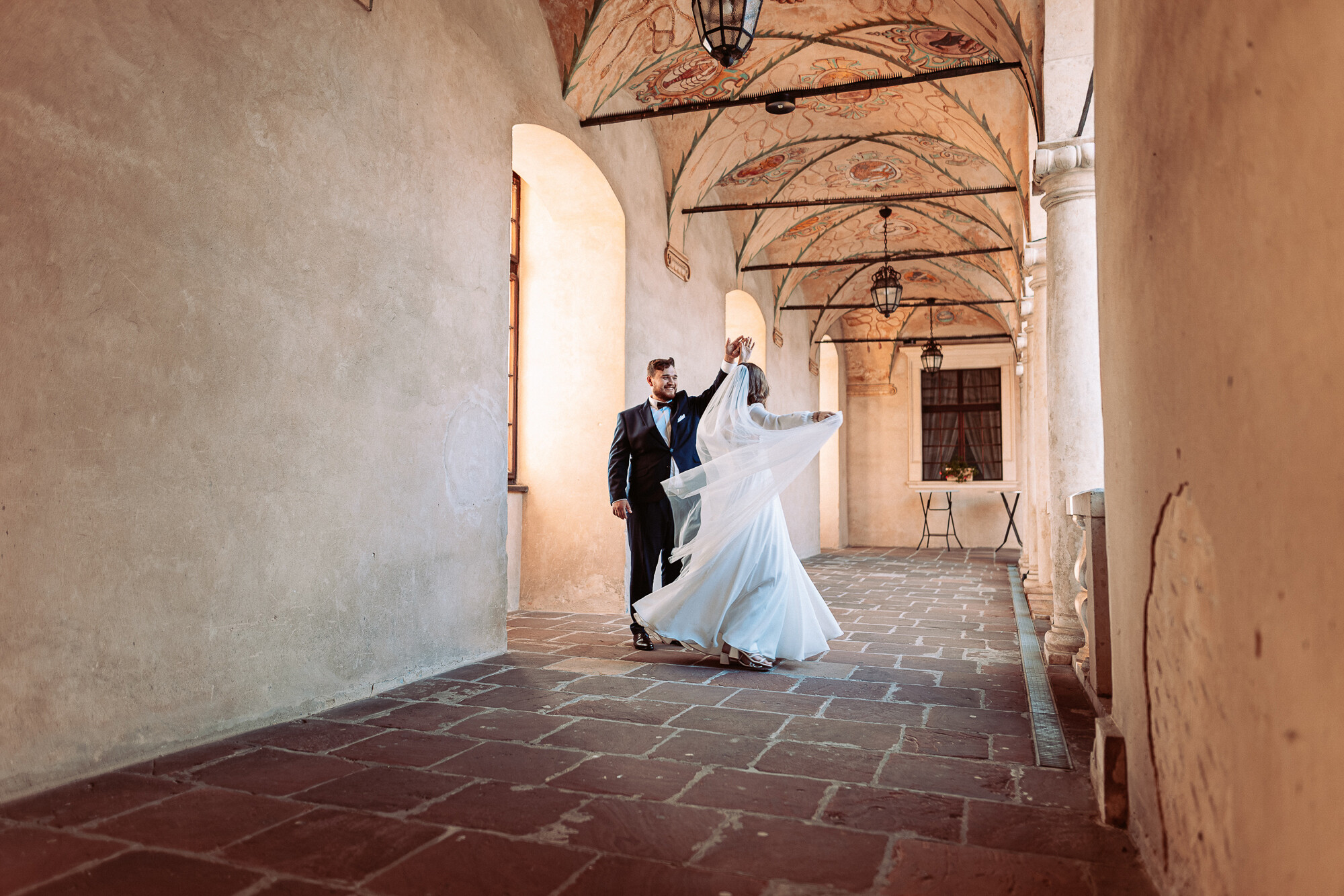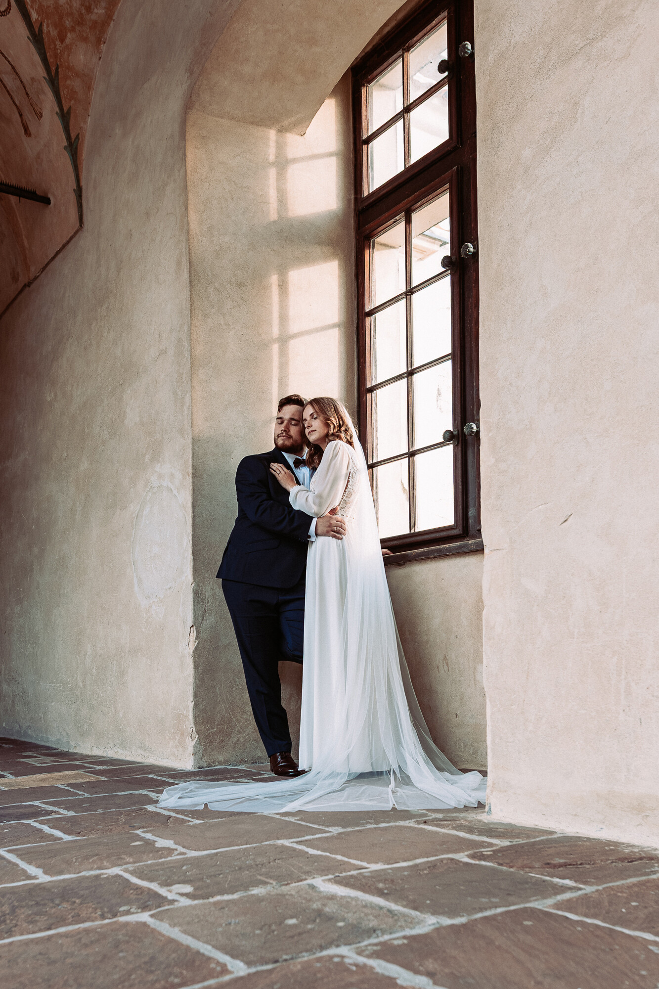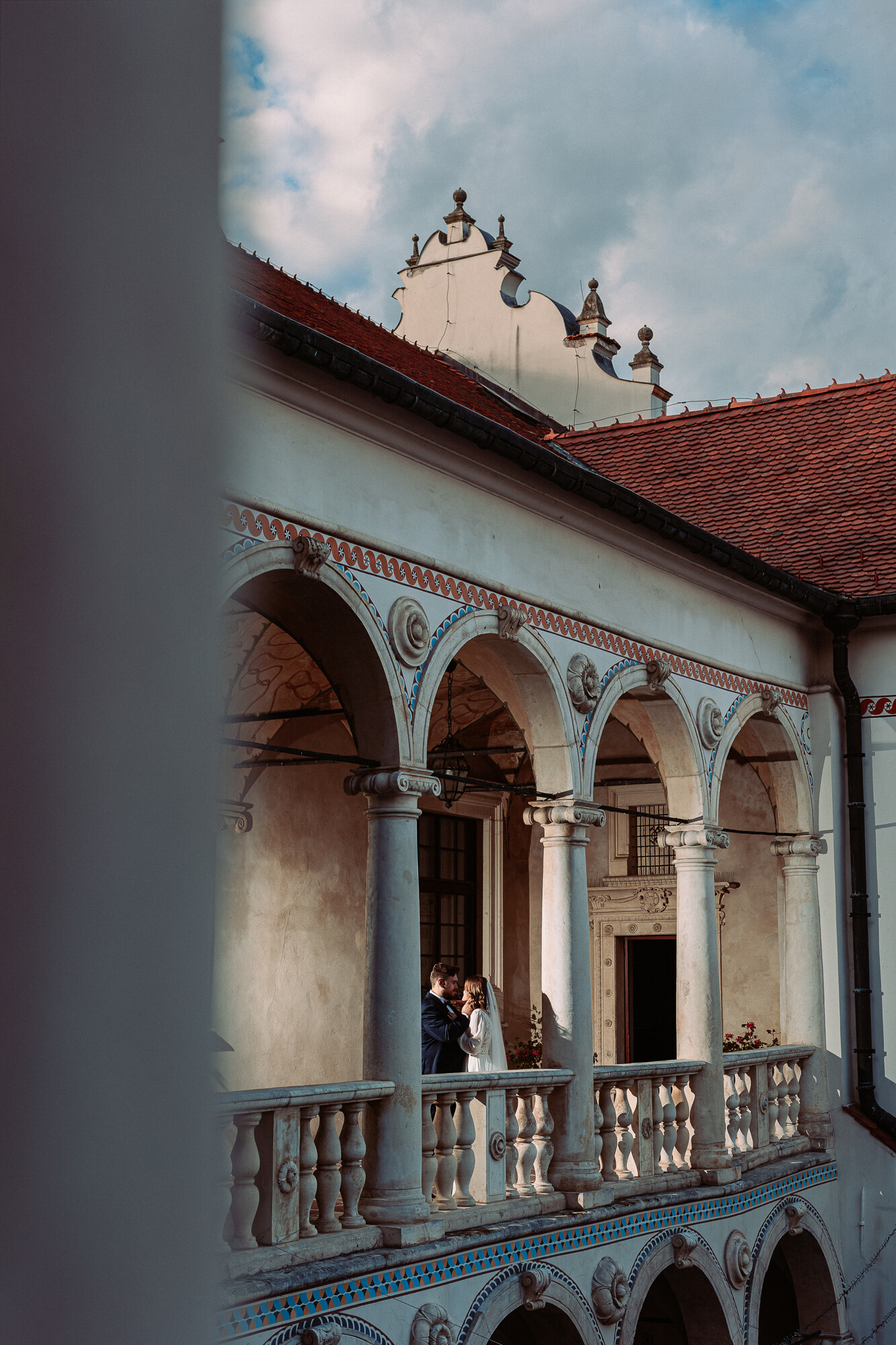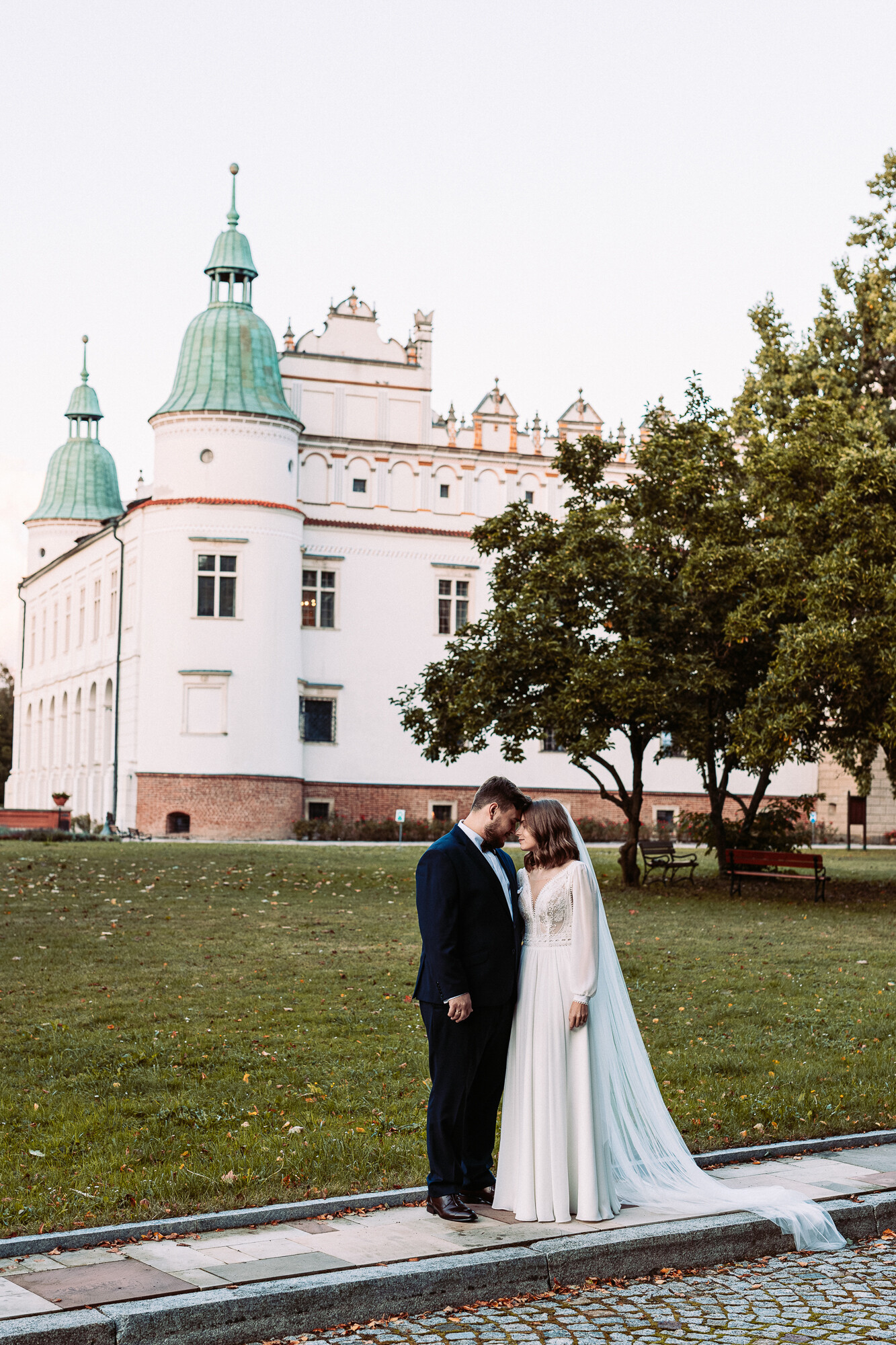 Sesja poślubna została zrealizowana w Zamku w Baranowie Sandomierskim. Klasyczna architektura oraz otaczające zamek ogrody stworzyły harmonijne tło dla ponadczasowych ujęć, podkreślających styl i osobowość pary młodej.