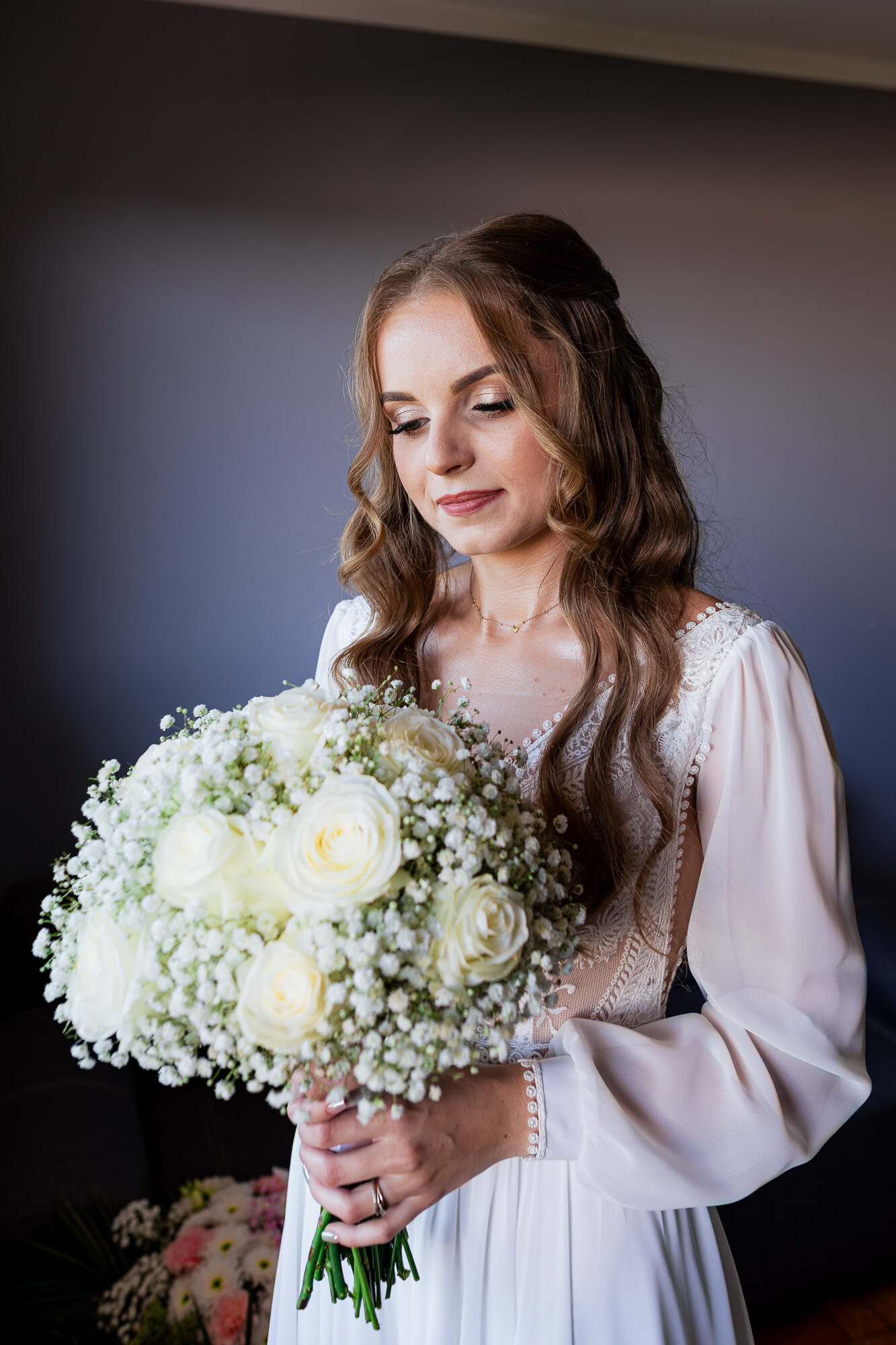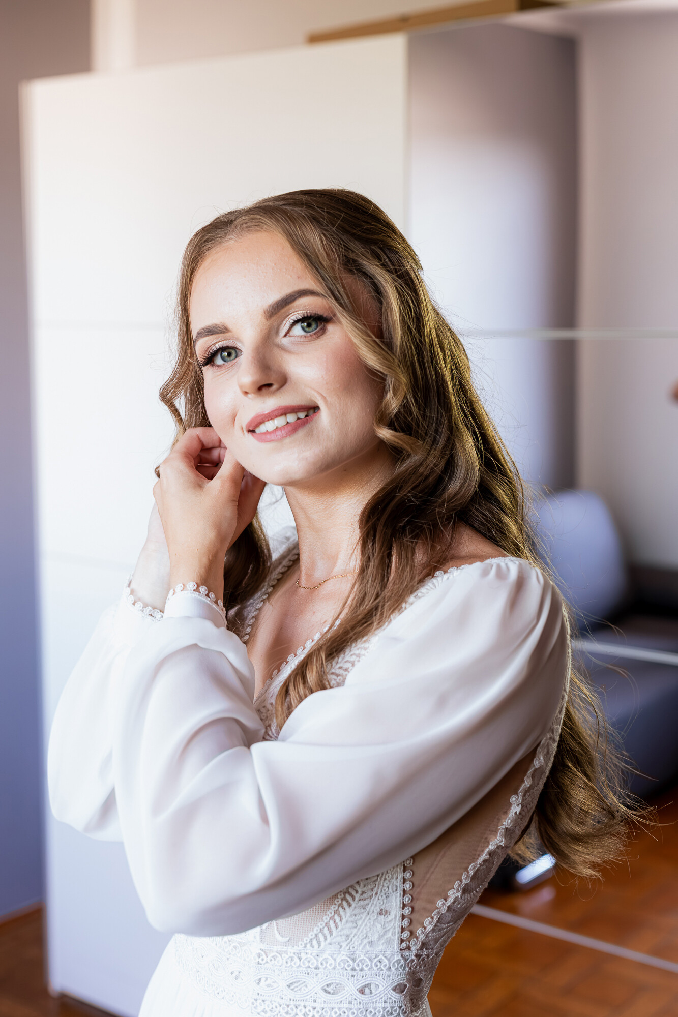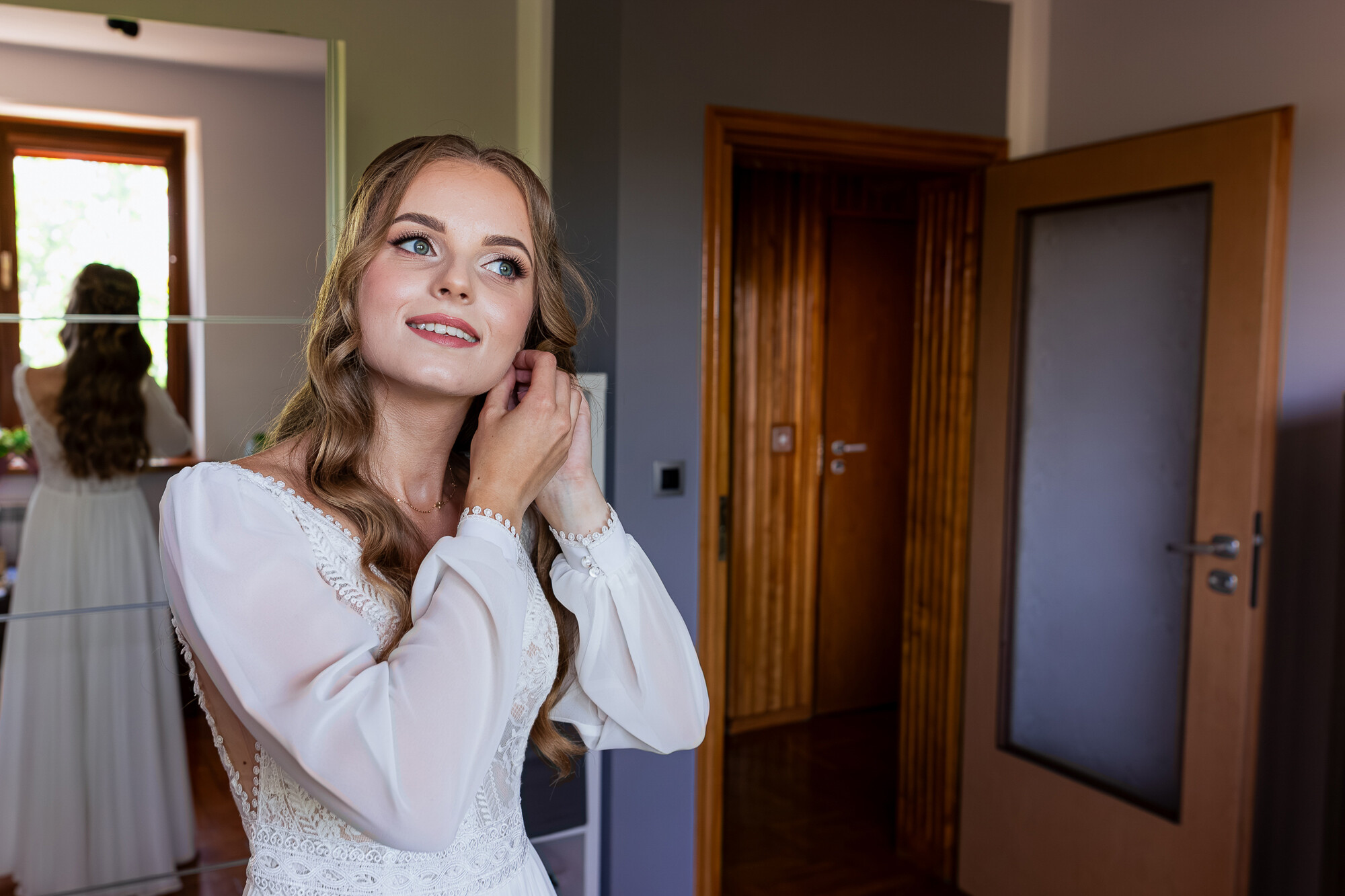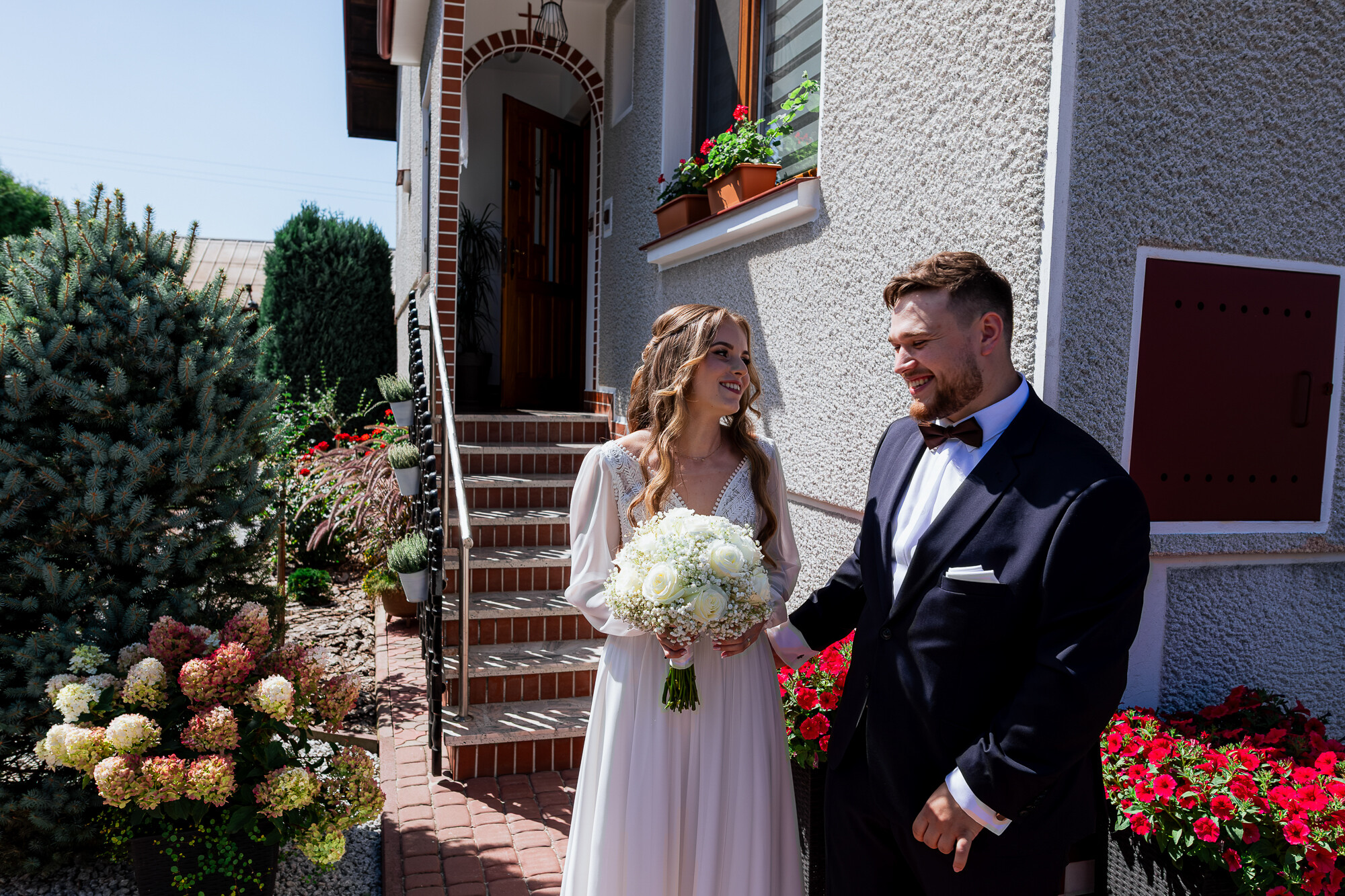 Był ostatni weekend sierpnia, kiedy to Wiktoria i Jacek postanowili powiedzieć sobie „tak”. Ich reportaż ślubny to spokojna, elegancka opowieść o dniu, w którym najważniejsze były emocje i bliskość. Kadry koncentrują się na autentycznych momentach – spojrzeniach, gestach i naturalnej atmosferze towarzyszącej całemu wydarzeniu. Przyjęcie weselne w Restauracji Gizówka miało swobodny, rodzinny charakter, co doskonale oddaje klimat zdjęć.